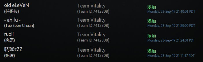 这四名选手相信大家也都非常熟悉了,除了若离外,其他均是圈子里身经百战的老将。这阵容虽然比不上VG、LGD和茶队,但也算是国内顶尖二线战队了。不过,目前Team Vitality只有四名选手注册,还有一名尚未公开。
