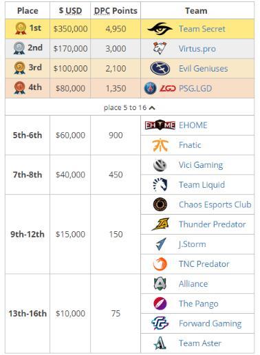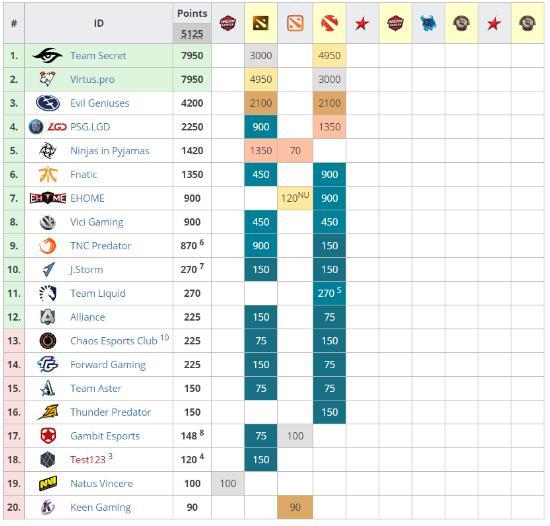 2. Liquid战队由于中单Miracle的个人原因未能参赛,临时让前Wings选手Shadow替补参赛因此只获得了450*60%=270的积分;